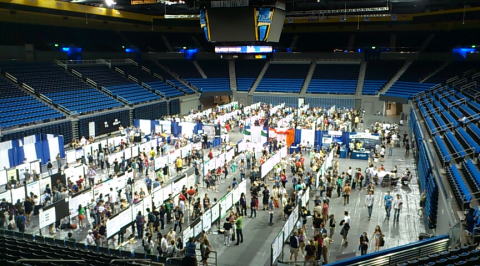 ご覧のとおり、その中はバスケットボールのスタジアムです。学会中はこのスタジアム内に所狭しとポスターが並べられています。