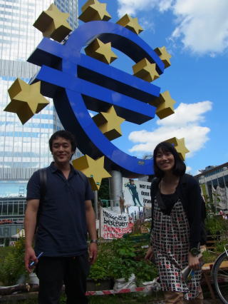 欧州中央銀行が見えてきます。EUROのモニュメントが目印です。