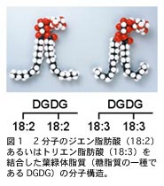 16:3)と総称されますが(図1)、これらの脂肪酸の量比は、生育環境に応じて大きく変動します。われわれは、これらの脂肪酸が植物の環境ストレス、と