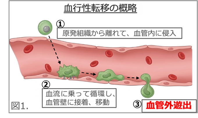 (※1) 血行性転移・・・がん細胞などが血管へ侵入し、血流循環に乗って遠隔まで移動し、血管の外に遊出するプロセスを含む細胞移動